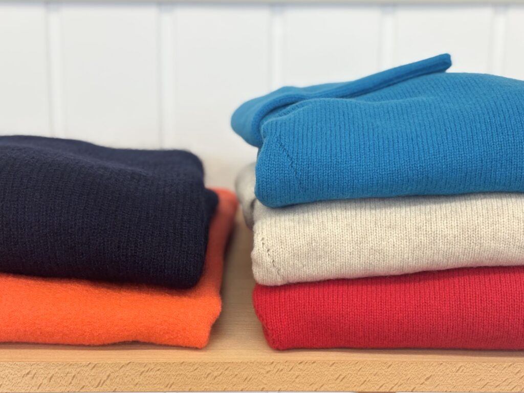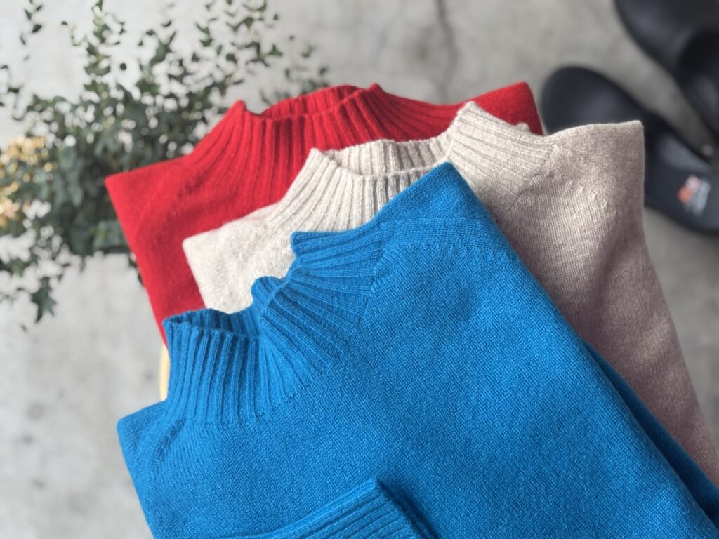 毎年定番の綿カシミヤのスタンドプルオーバーニットの新色◎