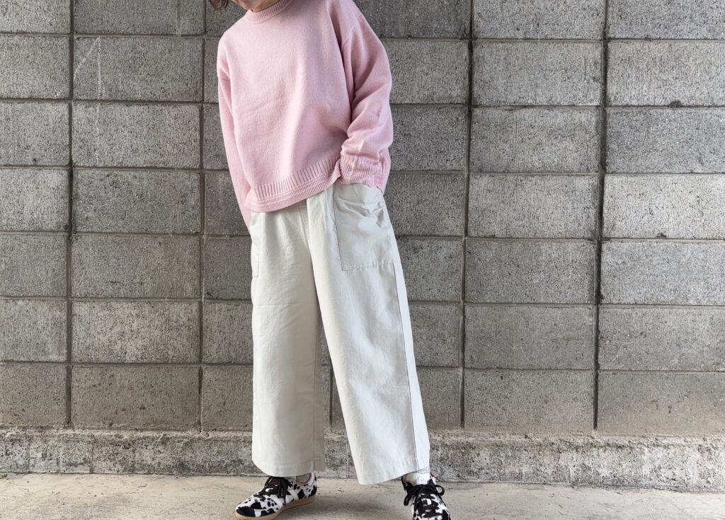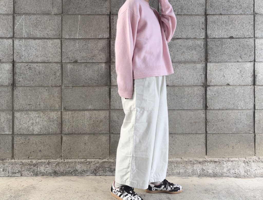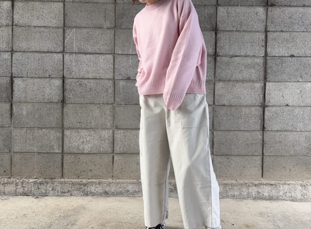ニットは、コットンウール素材。スウェットのような感覚で着用できる1着です。