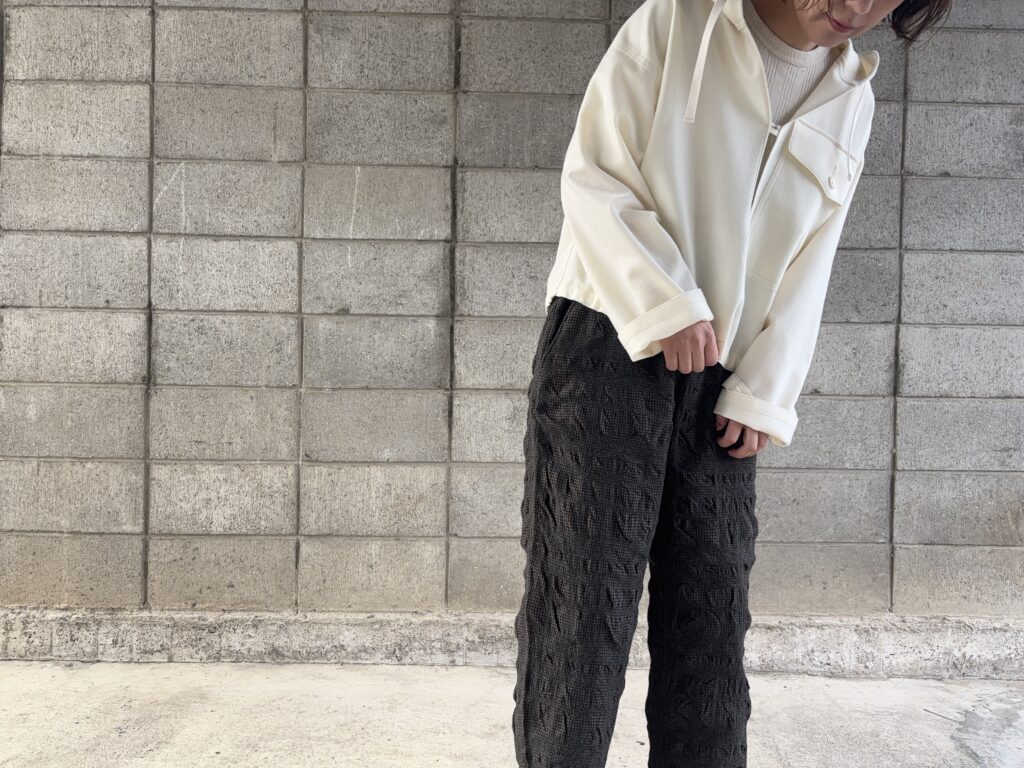 ウールコットンのハンドトゥース生地を使用したイージーパンツです。