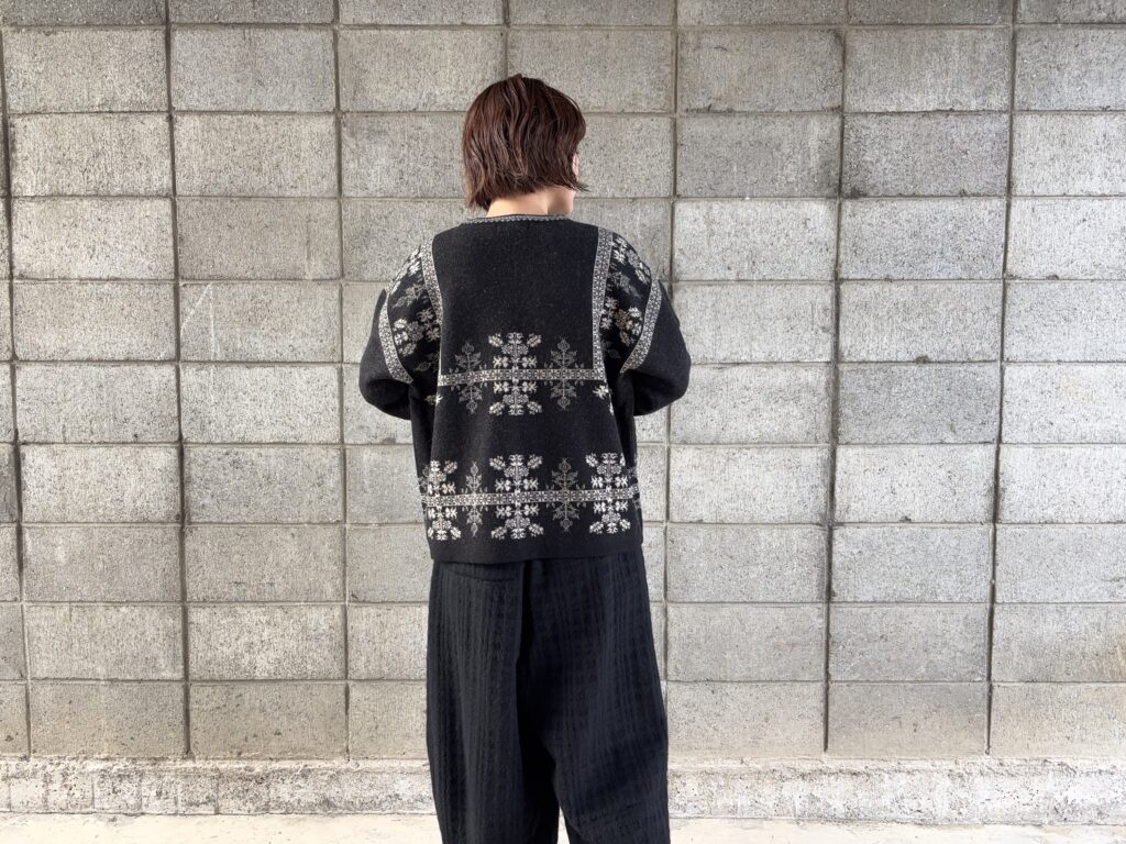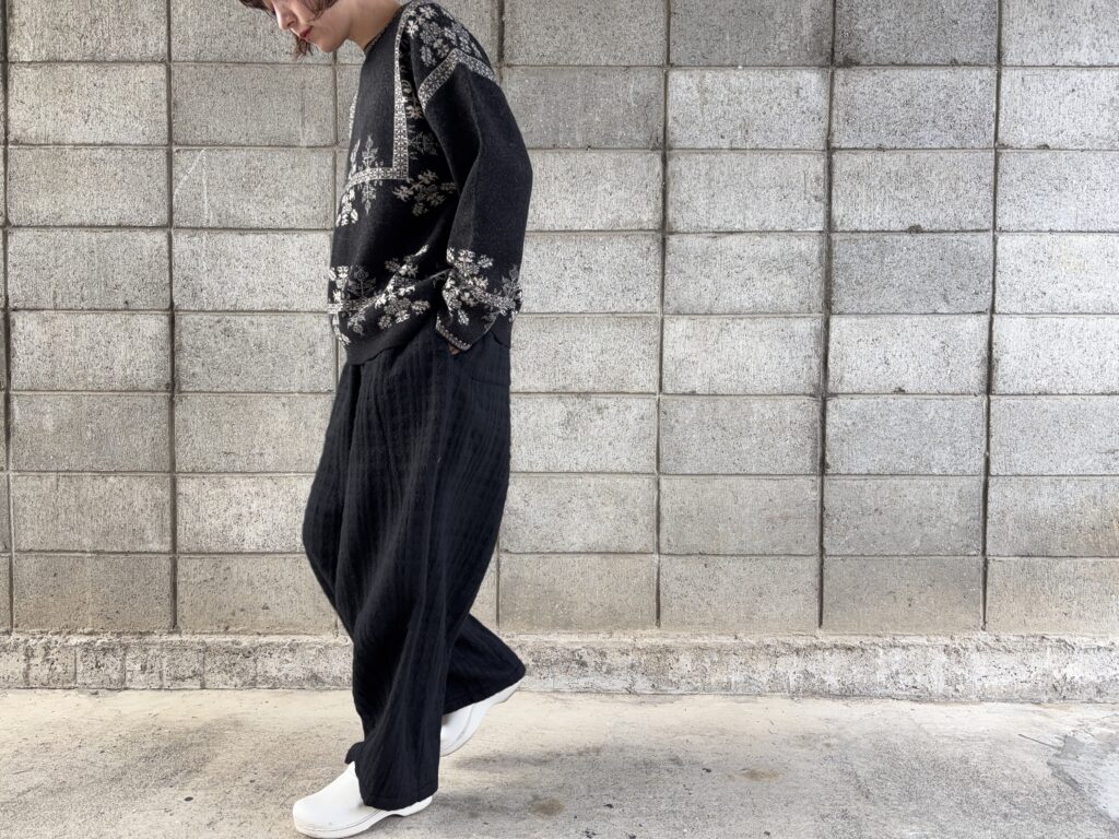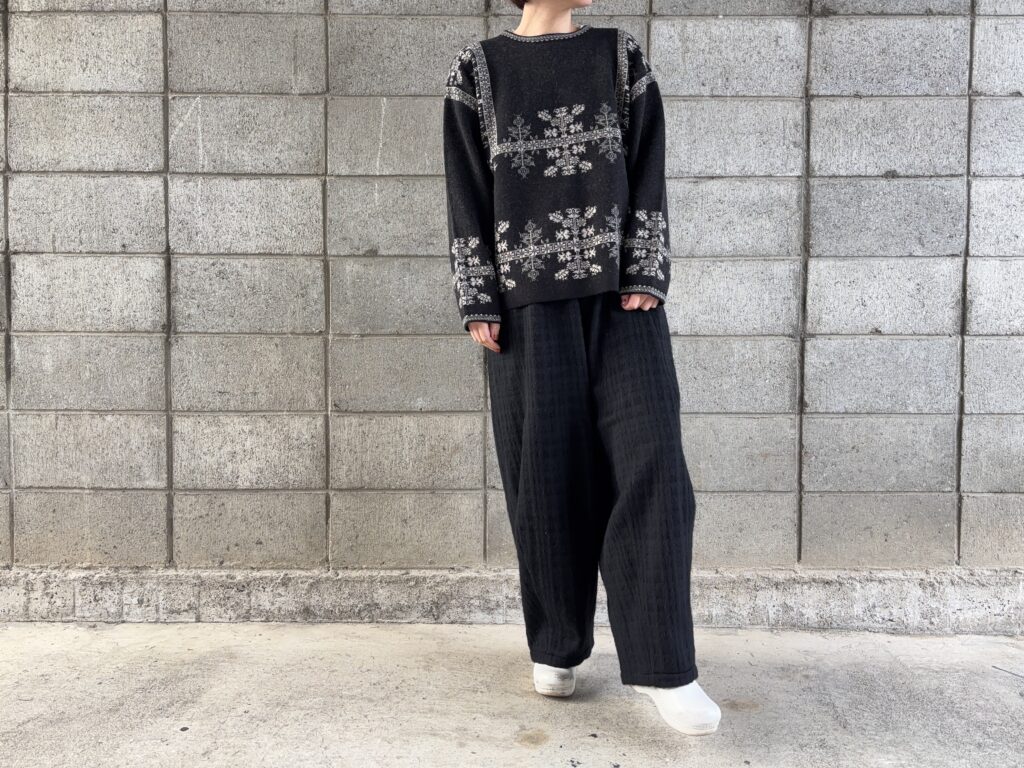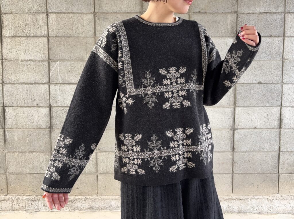 アンティークのクロスステッチのような細やかな柄が魅力のセーターです。