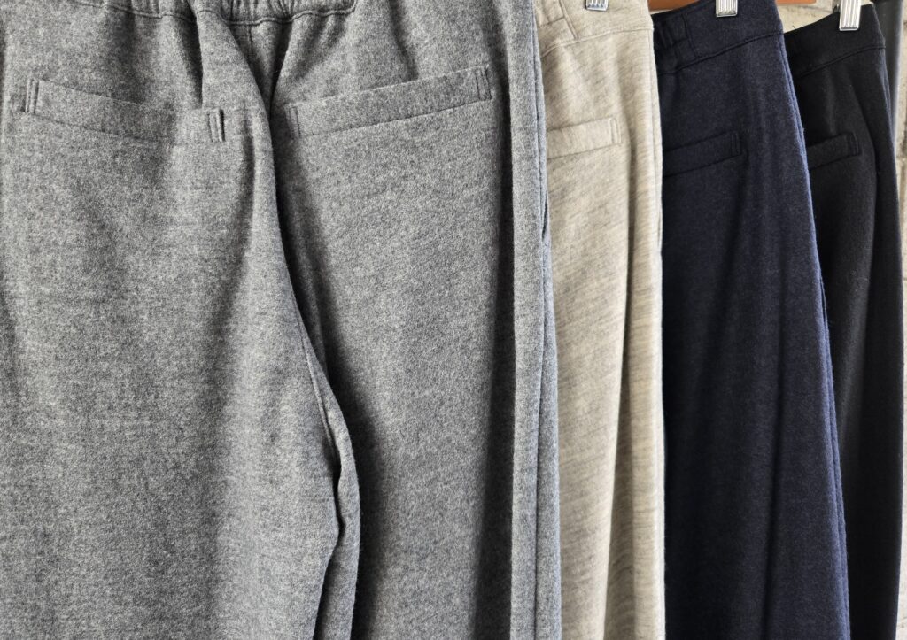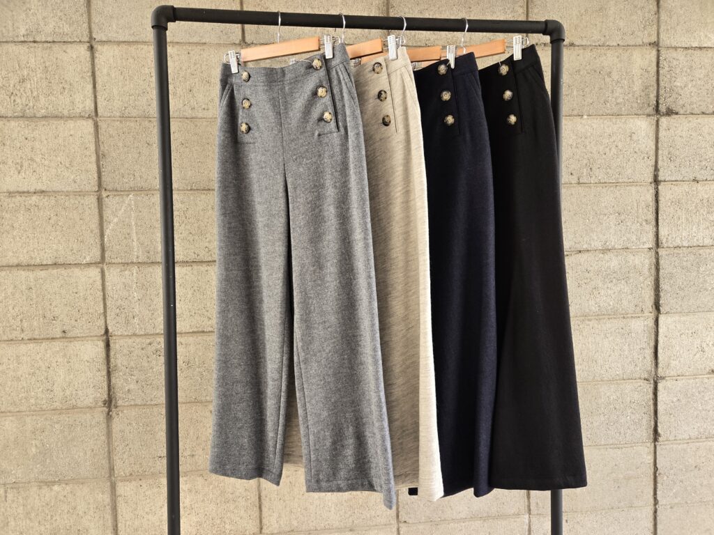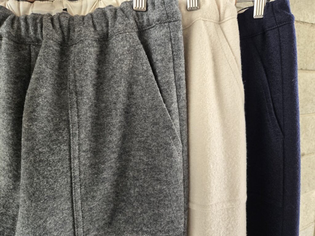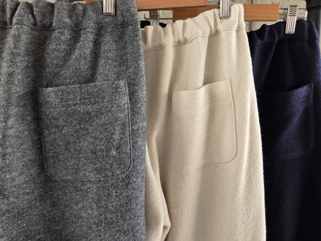 前はピシッと、後ろがゴムになっておりますので履きやすいですよ^^