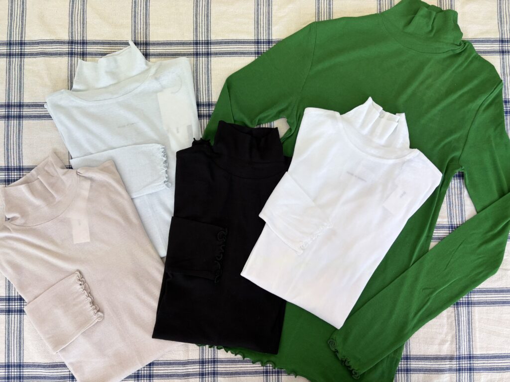 ガーゼ調に編み立てし柔らかい風合いのタートルネックです。