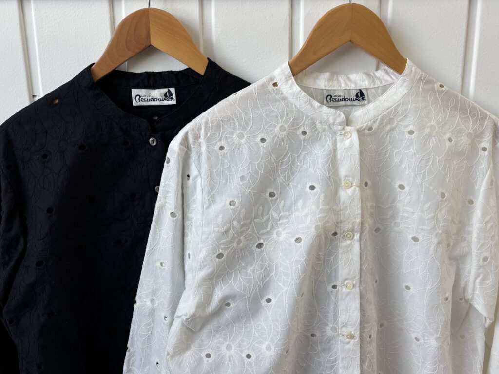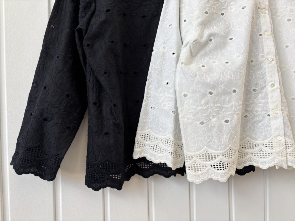 お花刺繍が全面の施されたレースシャツ。