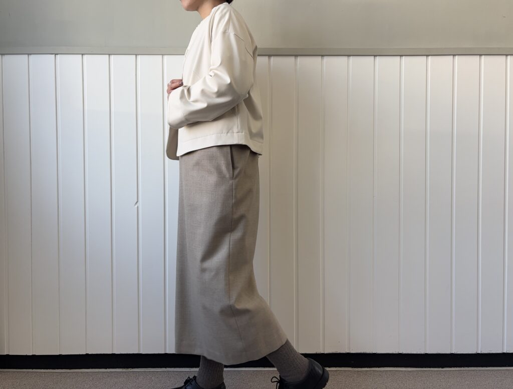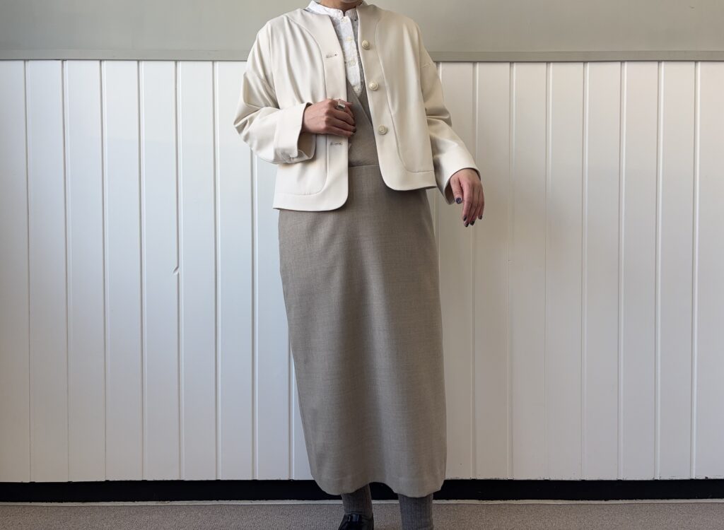ノーカラージャケットも合わせるとより一層きちんと感も出ていいですよね♩