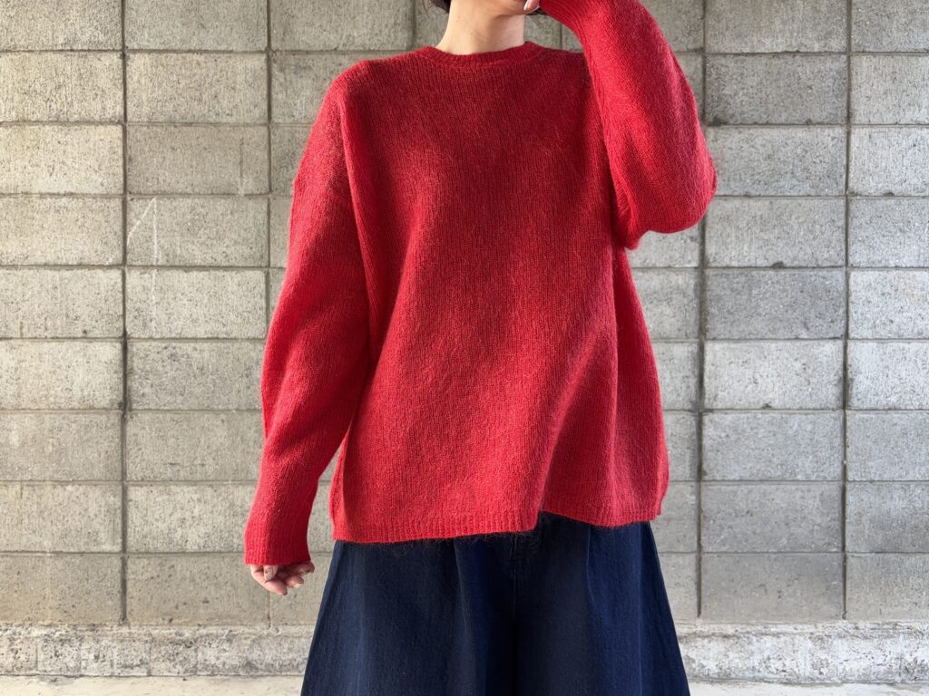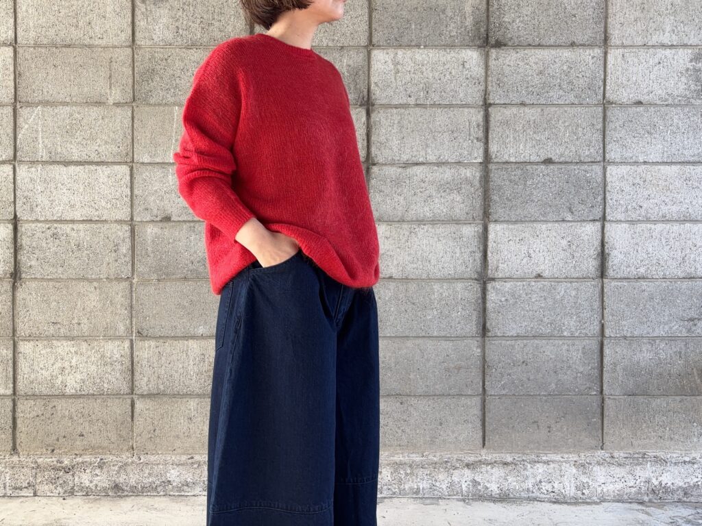 モックネックで首回りはしなやかで暖かく、ボディラインを拾わないゆとりのあるシルエット。