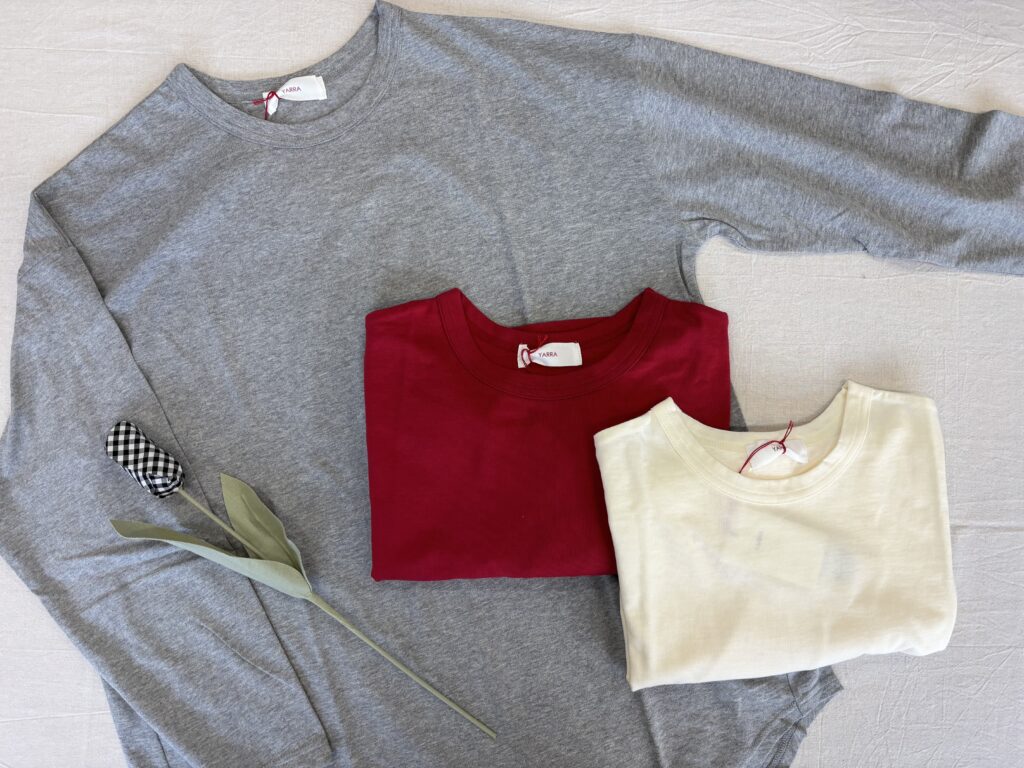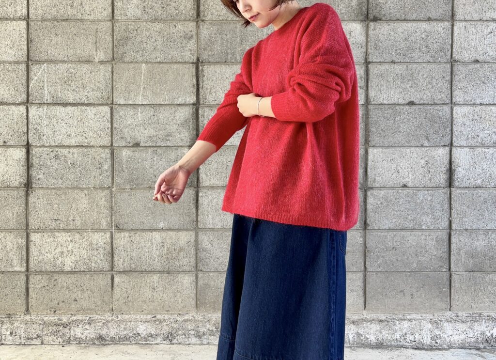 シンプルクルーネックで着回ししやすく、どんなボトムにも相性よくコーディネートを楽しんでいただけます。