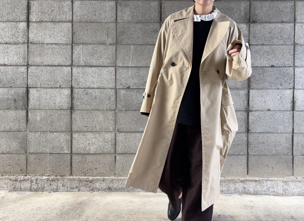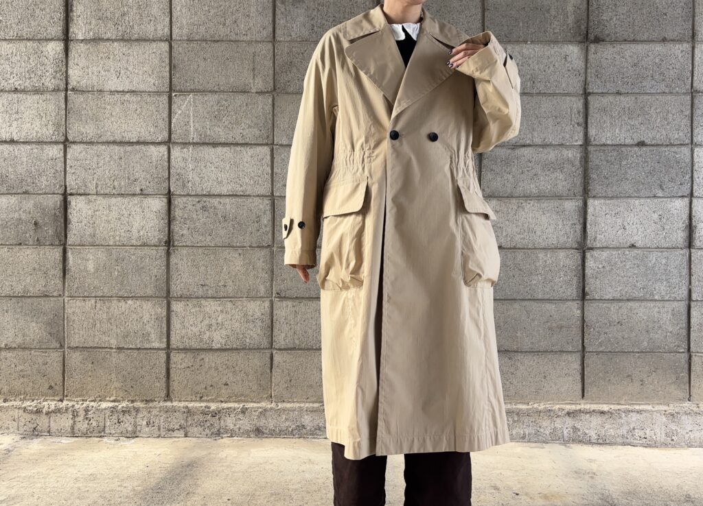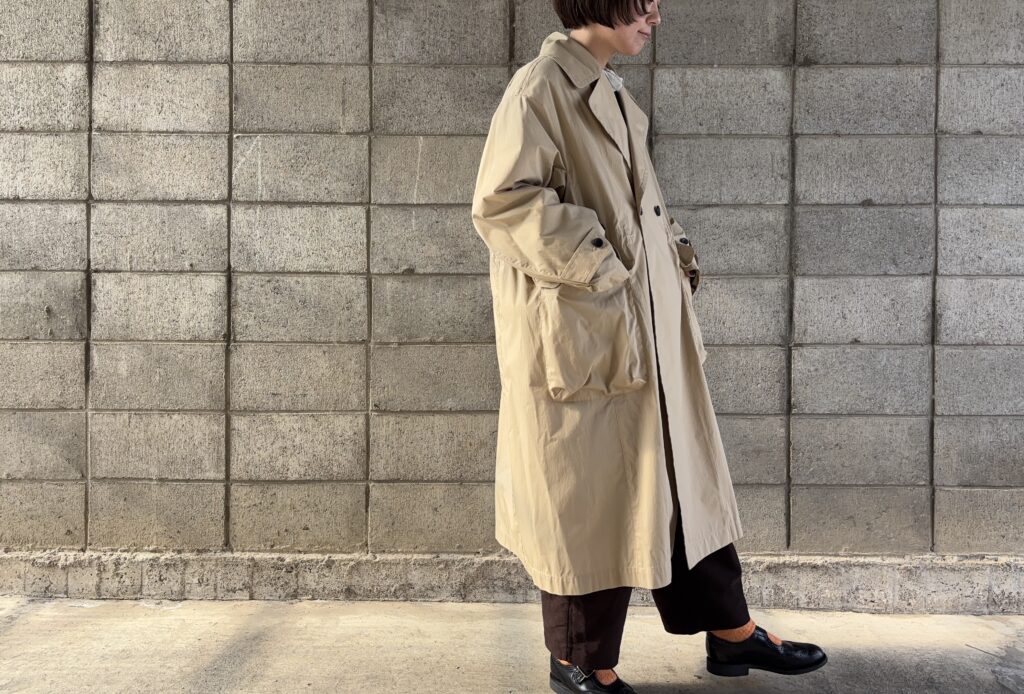 1枚仕立てで軽やかな着心地で、春や秋口にちょうどいい素材のコートです。