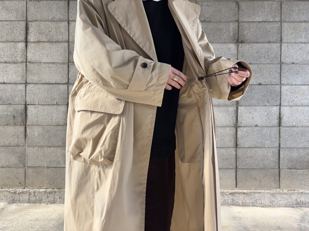 コットンナイロン素材の肌触りがしっとりとしたシルエットが綺麗なスプリングコートです。