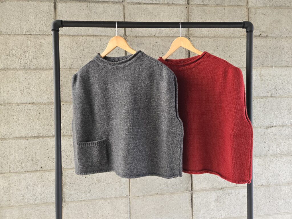 膨らみと柔らかさがあるラムズウールをローゲージで編み立てたニットベスト。