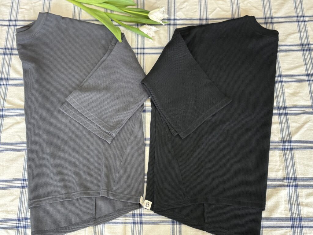 合わせたシャツはqiriのシャツで、ブラックのみ。