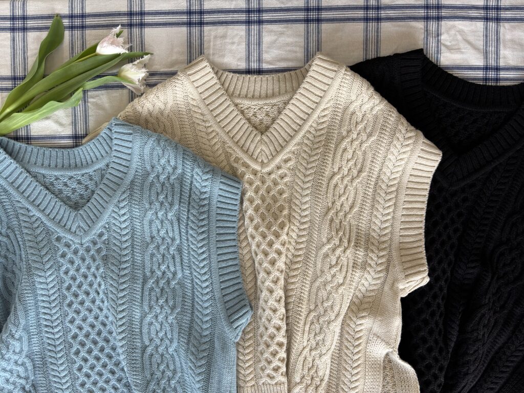 ゆるっとしたオーバーシルエットのケーブルニット🧶