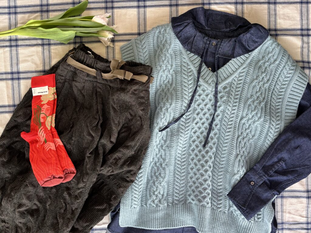 Brocanteのフリルカラーシャツ・Ordinary Fitsのちどり柄ウールパンツ🪿