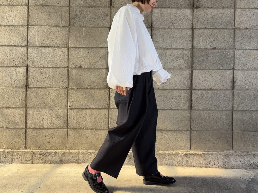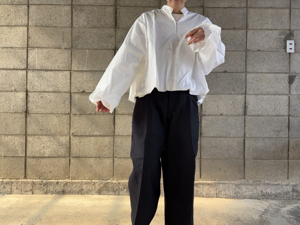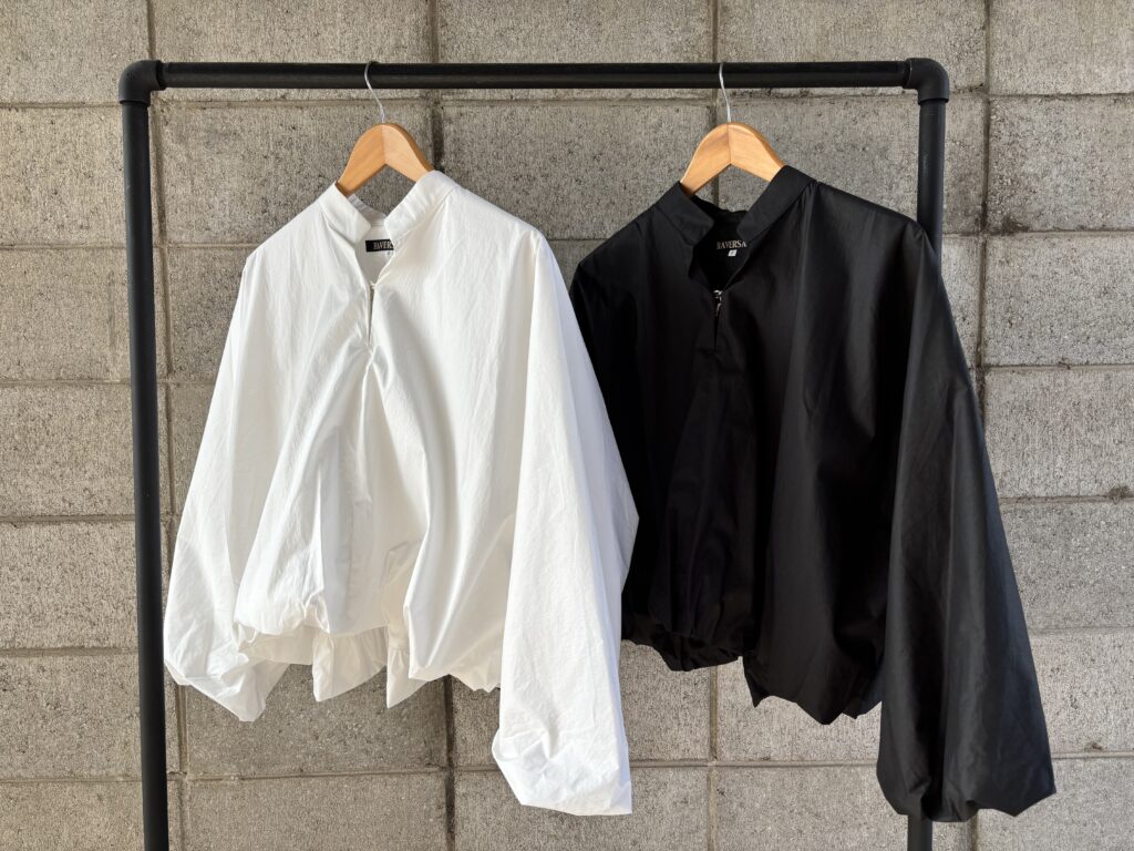 袖と裾部分がバルーンで1枚でサマになるブラウス。