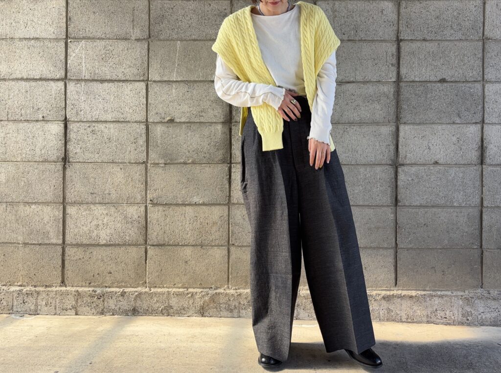 WANDERUNGのケーブル編みニットもシンプルなスタイルにアクセントになるのでおすすめですよ^^