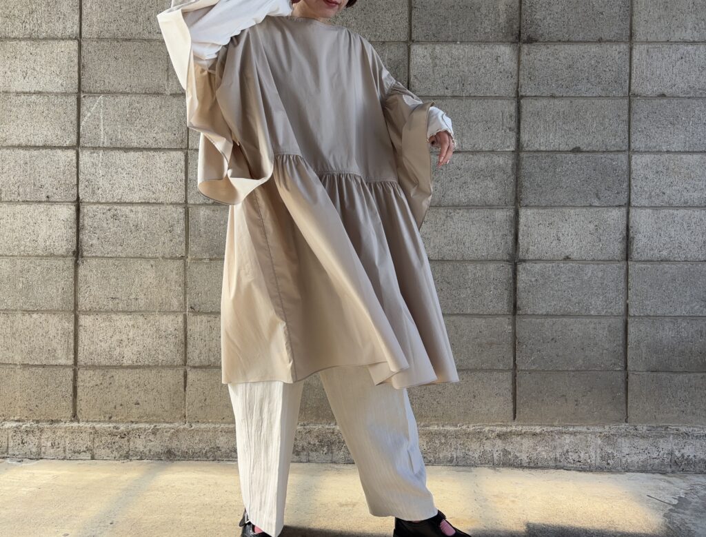 ナチュラルはこちら!!以前入荷していたギャザーチュニックに合わせました。