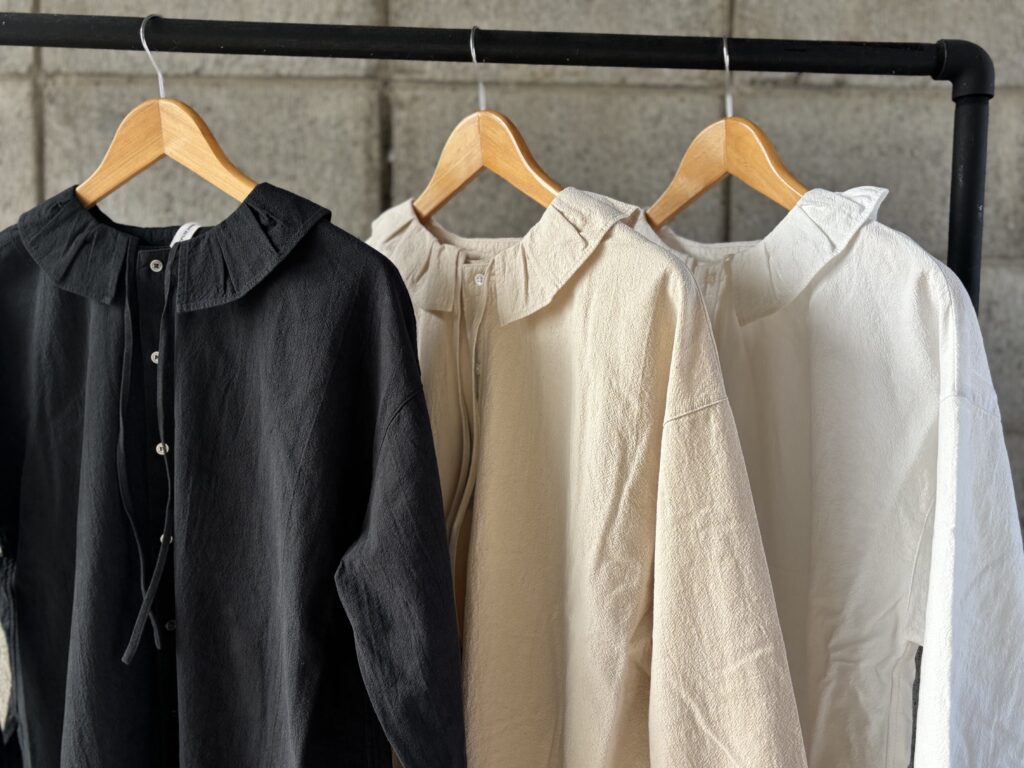 ラウンドした裾などニットやアウターから出るように重ね着に活用できるシャツですよ。