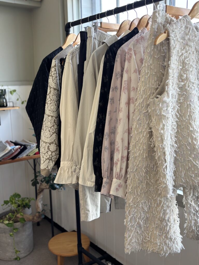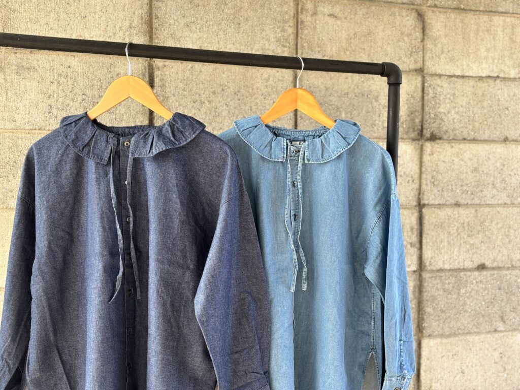 フリルがブロカントらしく、ニットやジャケットにも相性がいいデザイン。