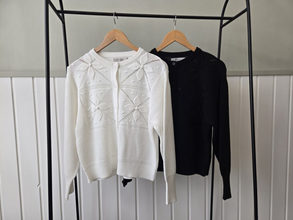 アンティークライクなクロシェモチーフと複数の編み地を組み合わせたカーディガンです。