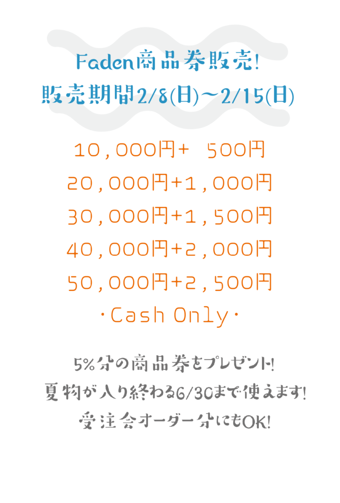 今日はFaden商品券販売のお知らせと靴下をご紹介していきます!