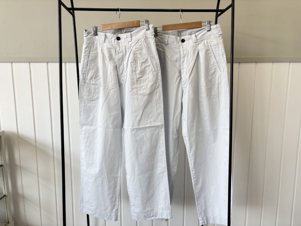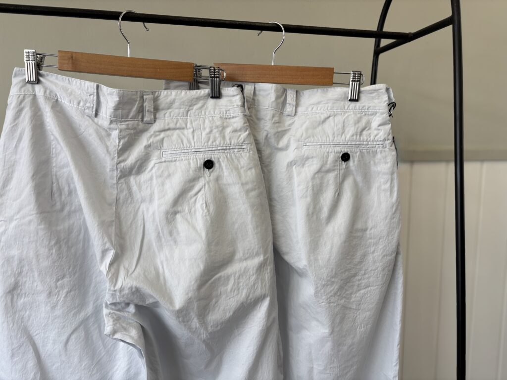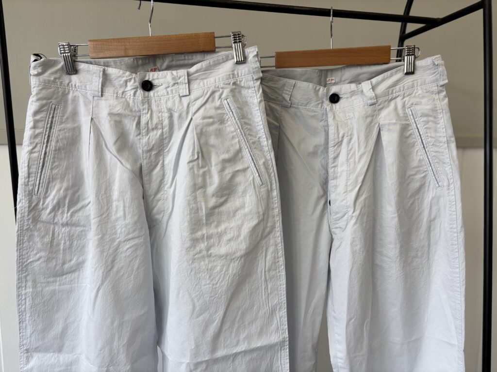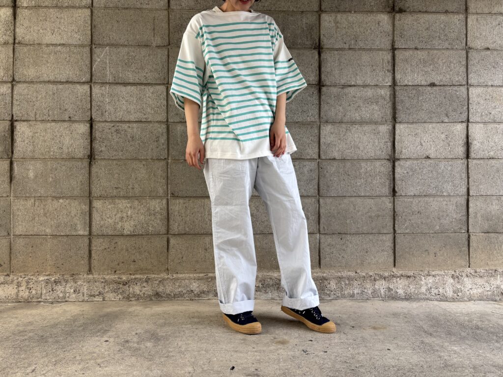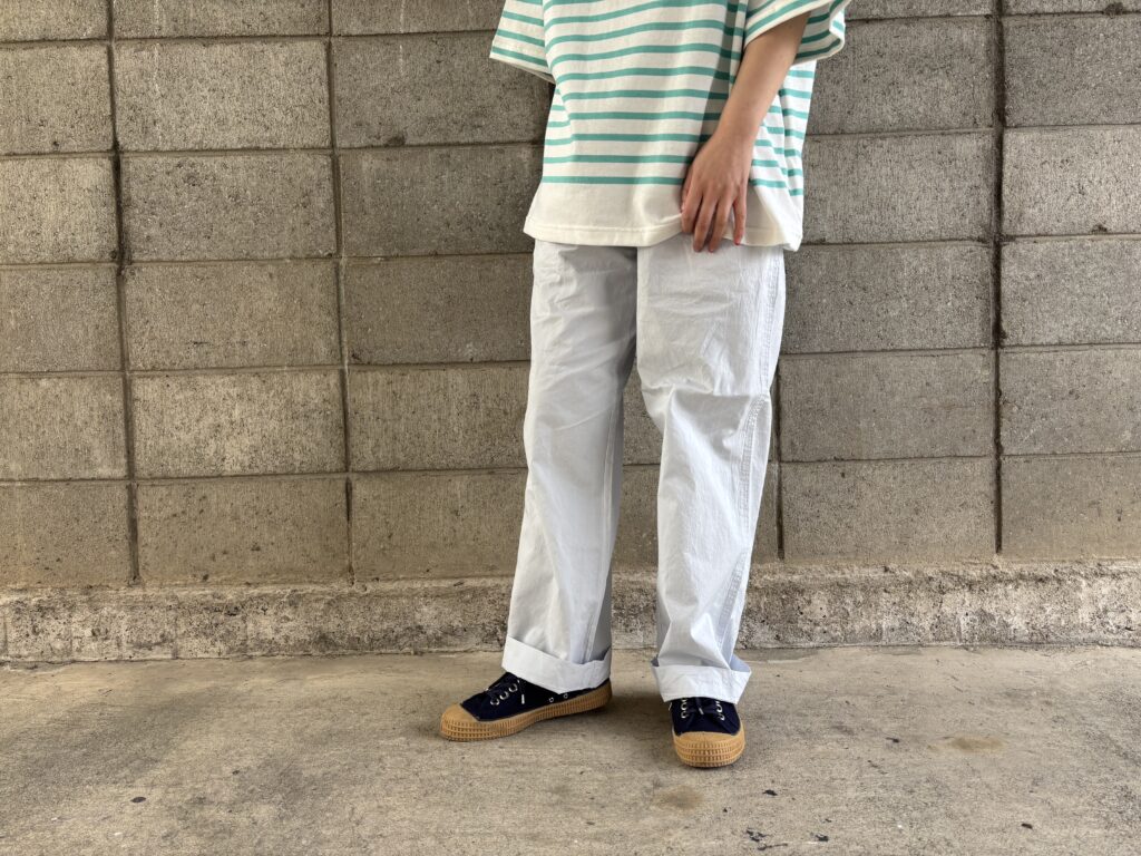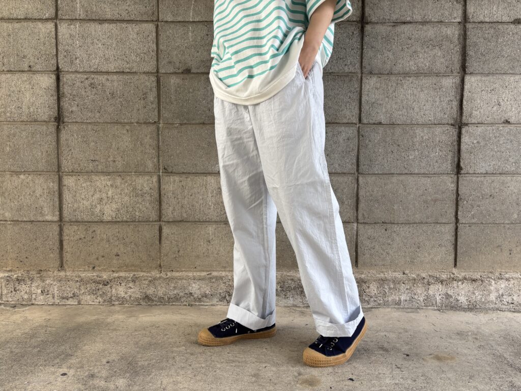 真夏でも履ける軽やかな生地感と、爽やかなカラー。