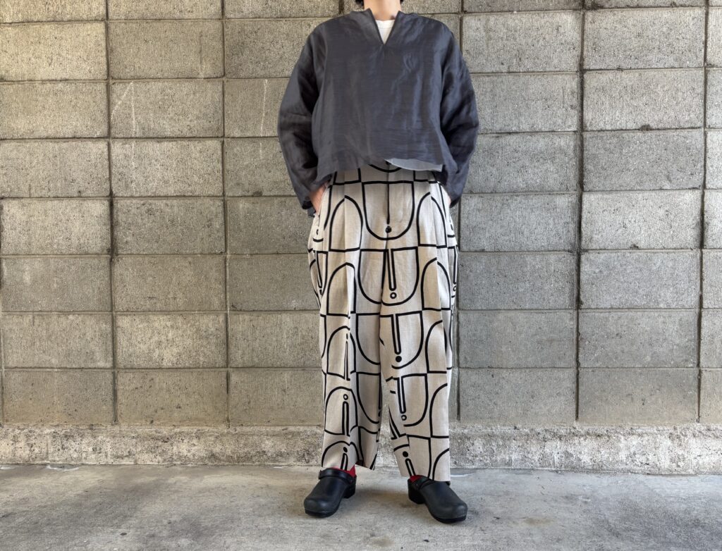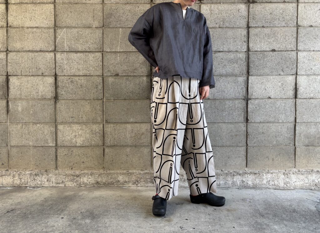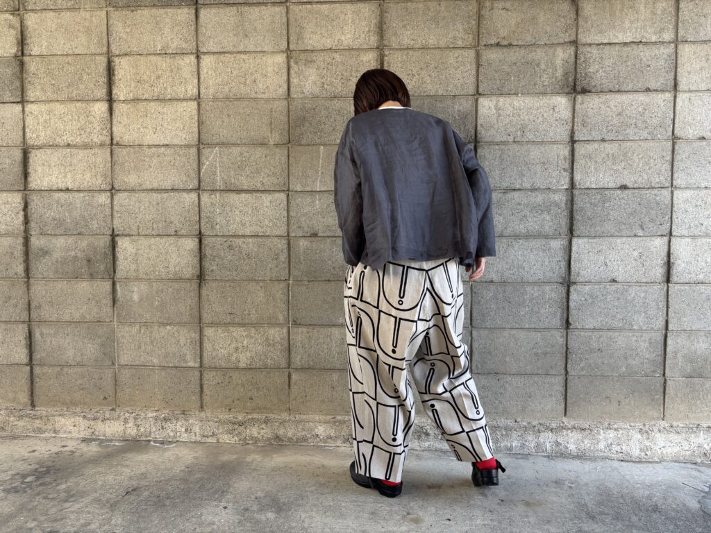 同じくHAVER SACKの柄パンツを合わせました💚