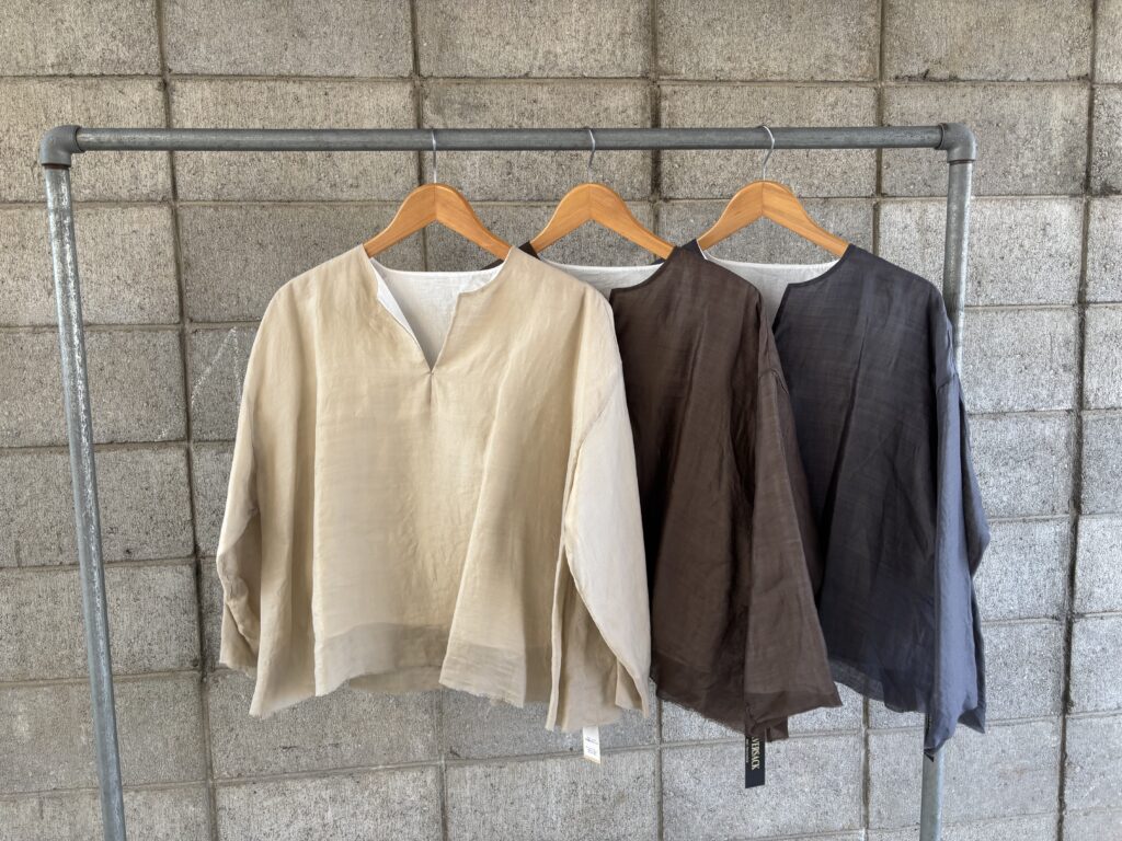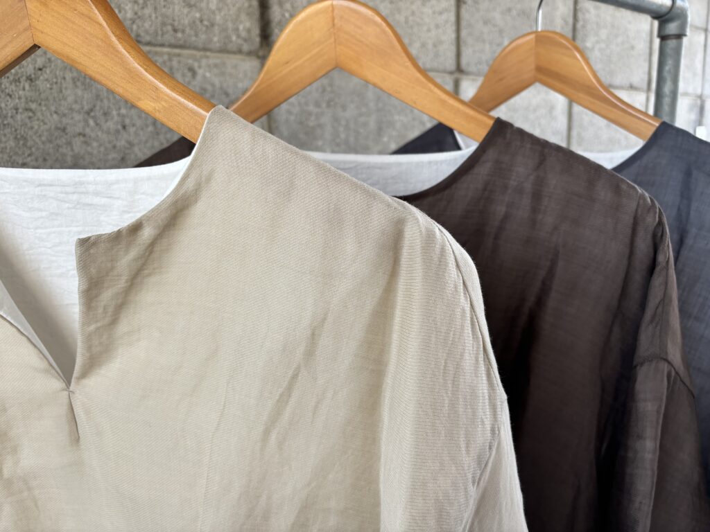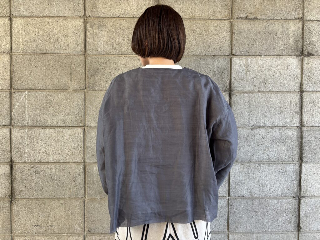 表がラミーで裏がコットンナイロンのリバーシブルブラウスです。