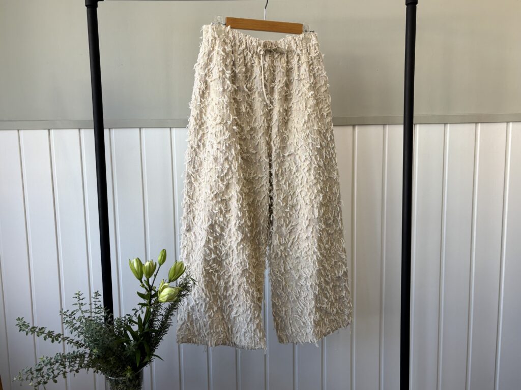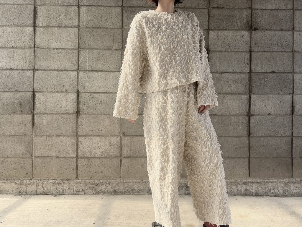 不揃いにカットした糸も他にはない生地感で、qiriらしいデザインです^^