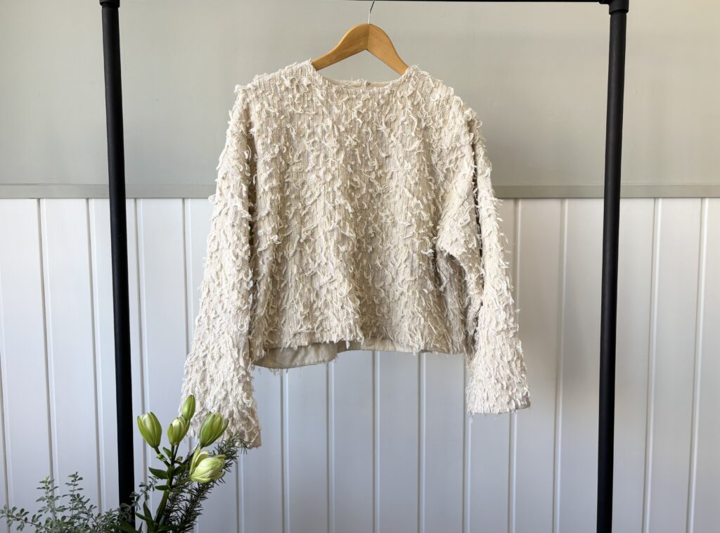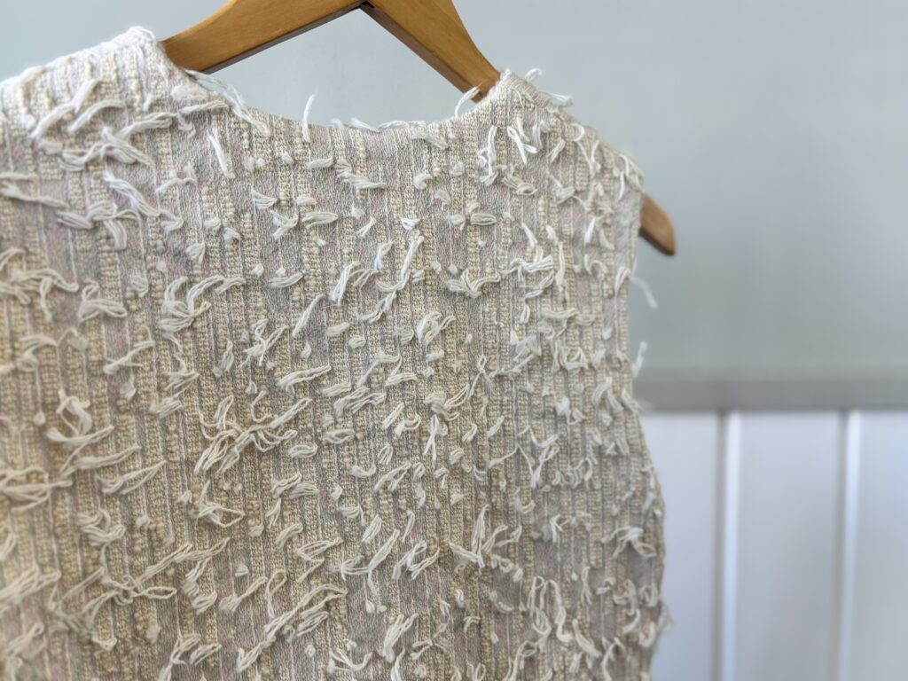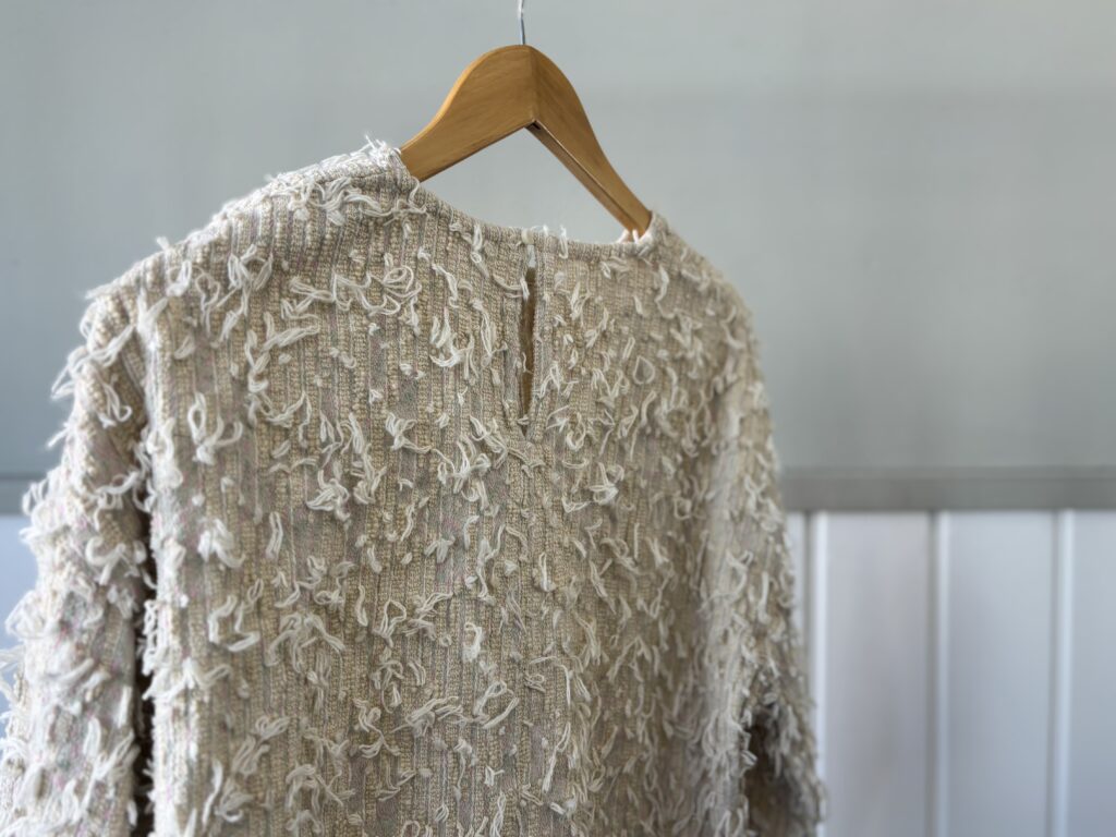 ツイードのニットのような雰囲気のあるカットジャガードのテキスタイル。