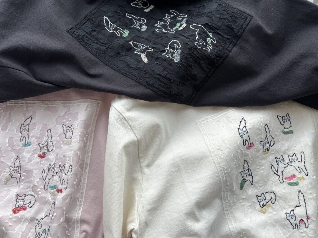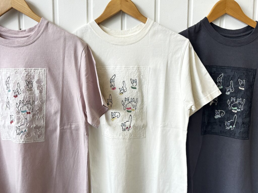 靴下を集めている猫たちを刺繍したTシャツ🐈