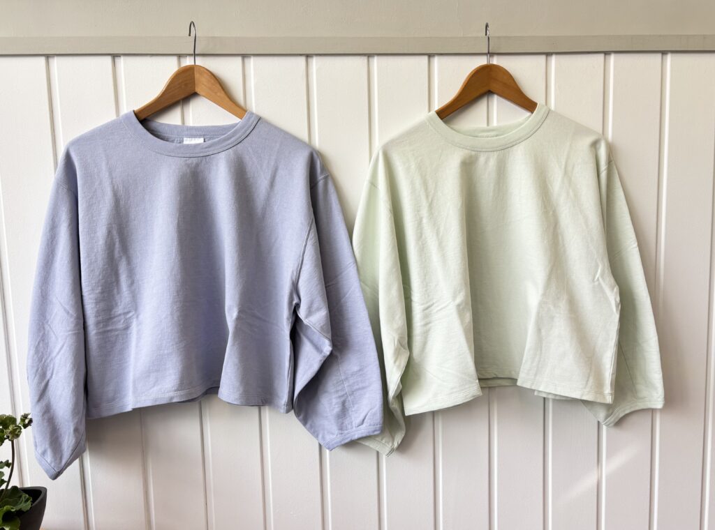 着丈が短めの薄手のスウェットで、季節の変わり目に重宝するアイテム。