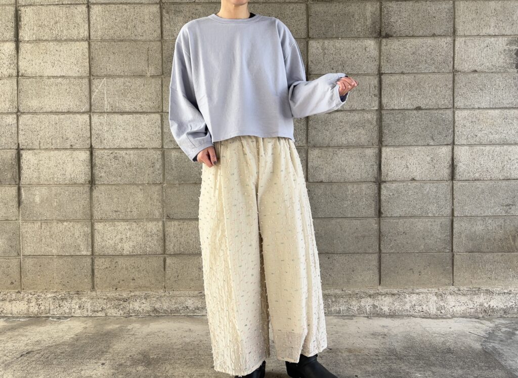 ソフトな生地感で肌触りもよく、心地よい着心地が特徴的です。