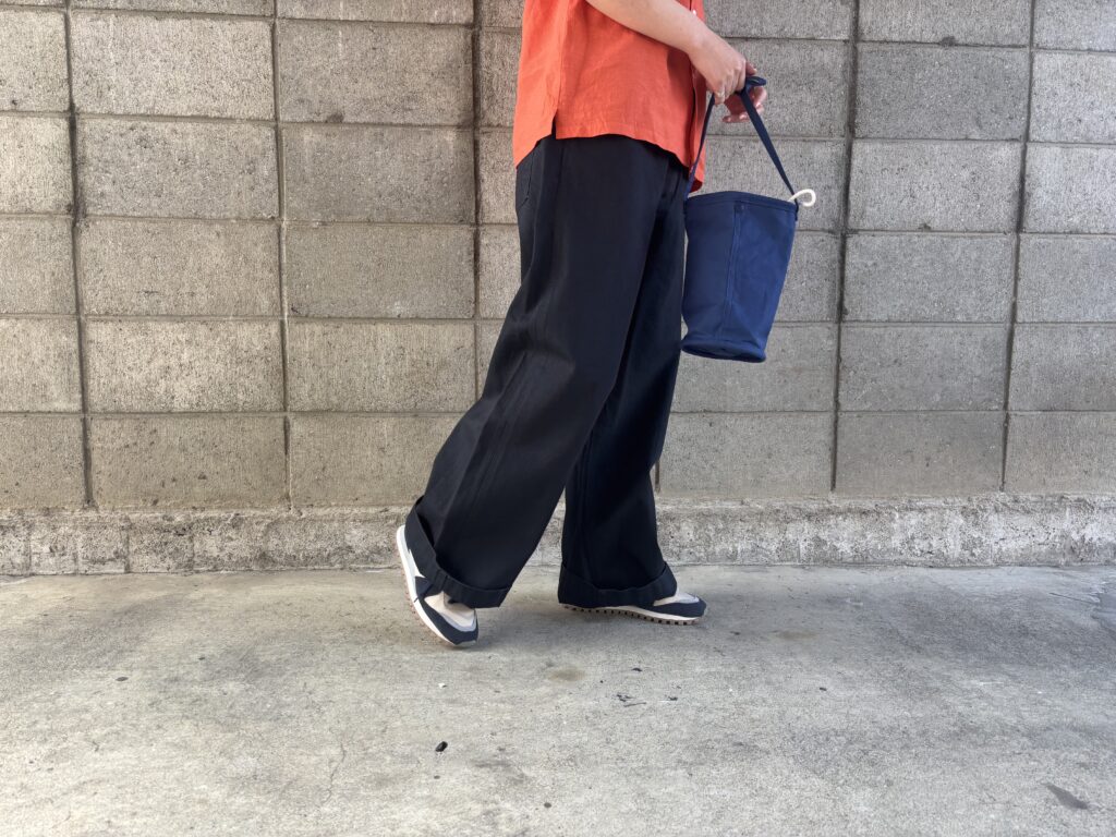 身長160cmだと裾をひとまくりするとちょうどいい長さでした。